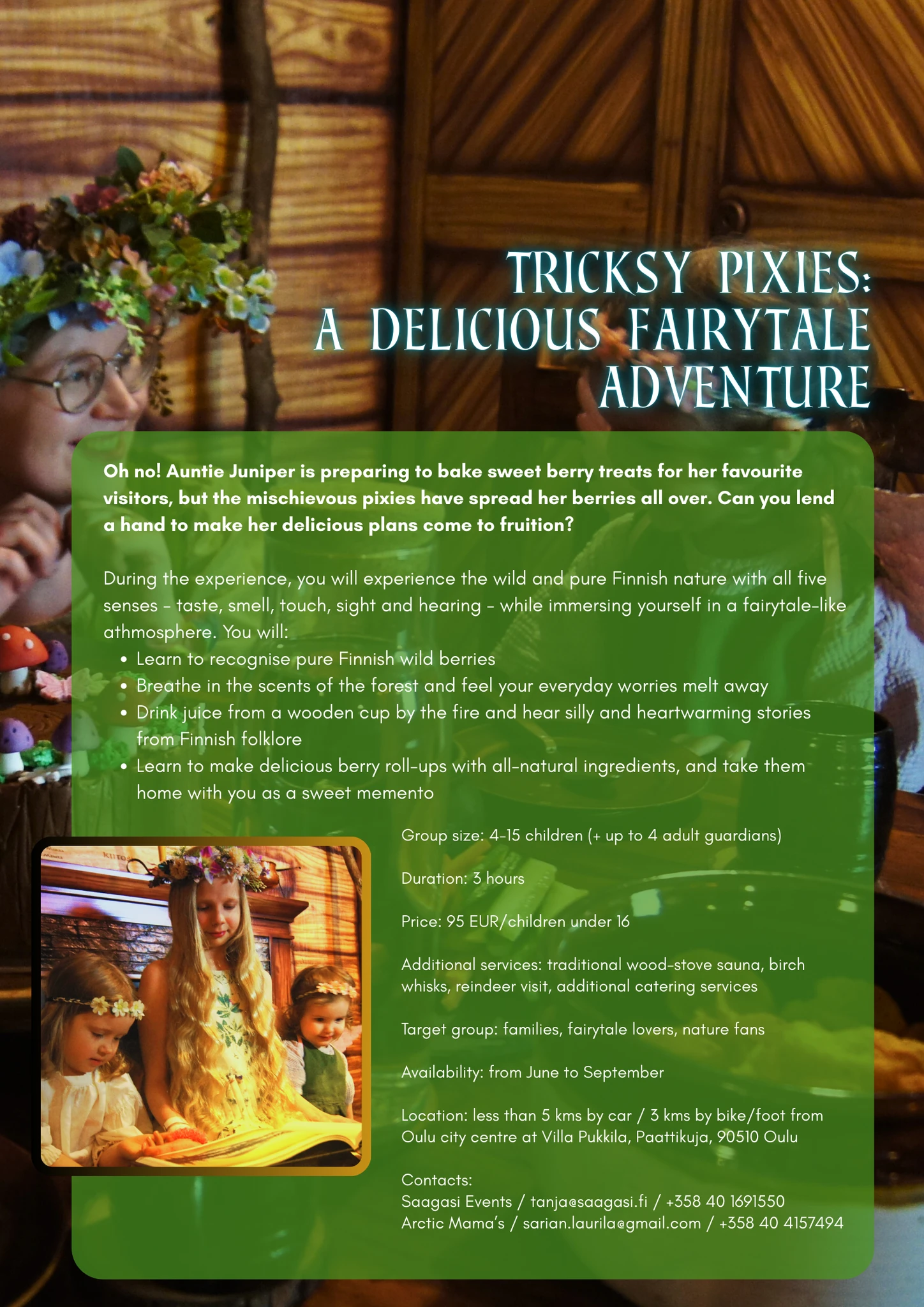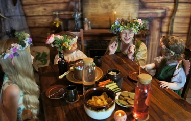 Drink juice from a wooden cup by the fire and hear silly and heartwarming stories from Finnish folklore